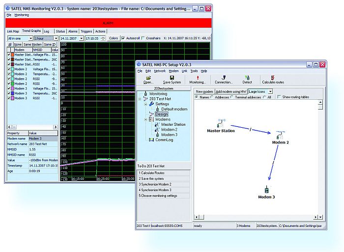 System Zarządzania Siecią (NMS) pozwala na pełniejszą kontrolę sieci bezprzewodowej oraz upraszcza jej konfigurację i rozbudowę. Projektowanie systemu bezprzewodowego bazującego na technologii NMS, odbywa się z poziomu bezpłatnego oprogramowania SATEL NMS PC, które pozwala na graficzne dodawanie i usuwanie radiomodemów oraz na rysowanie tras przesyłanych komunikatów.