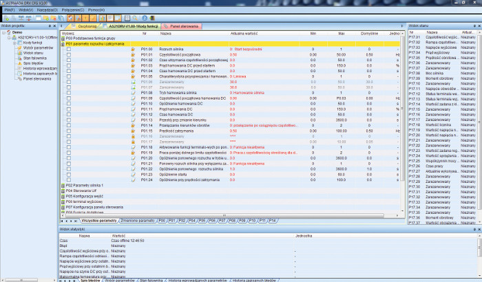 Okno konfiguracji falownika w polskiej wersji oprogramowania Astraada DRV CFG