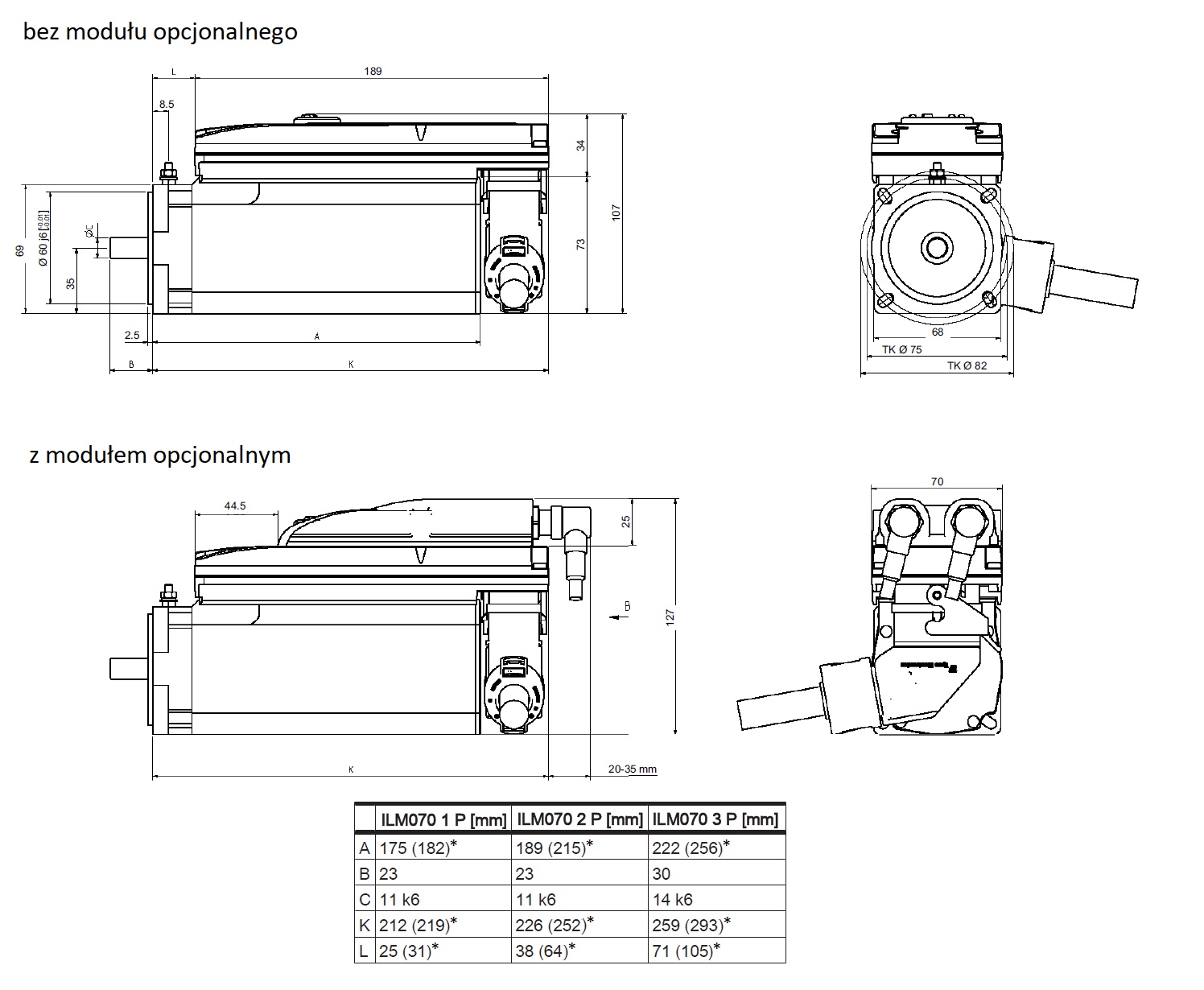 * - wartość w nawiasie dotyczy silnika z hamulcem