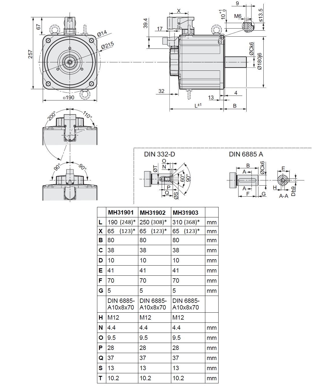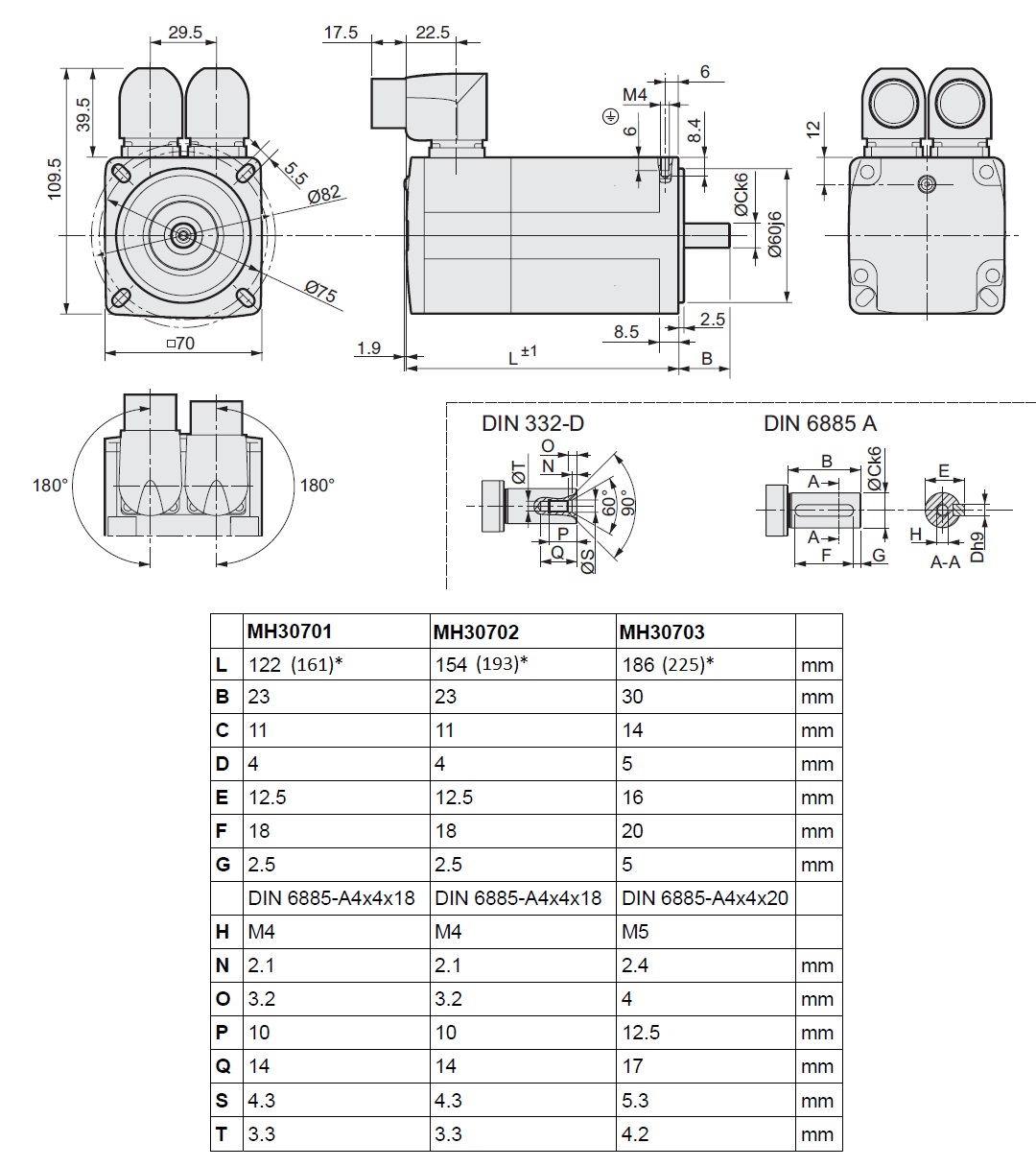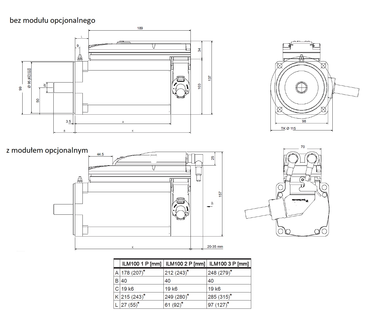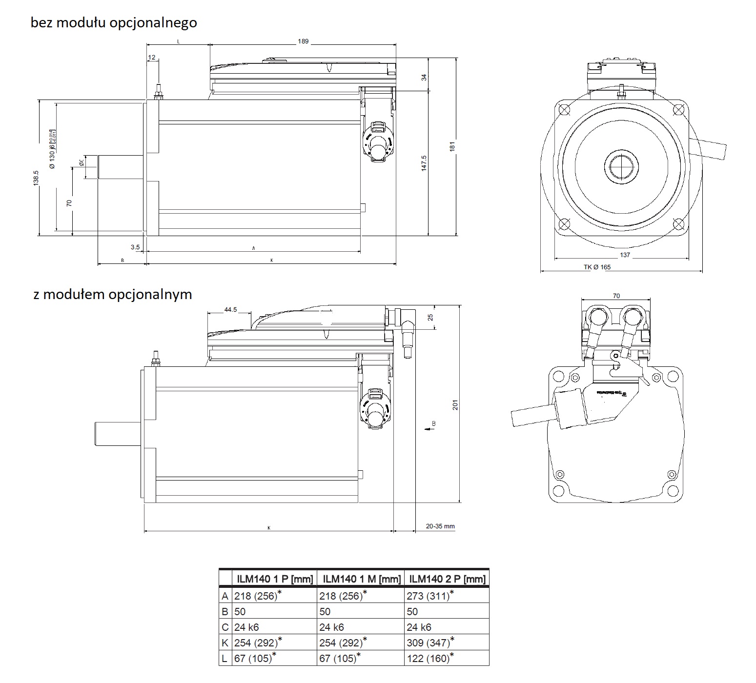 * - Podana waga dotyczy silnika bez hamulca. Waga silnika z hamulcem podana jest w nawiasie.