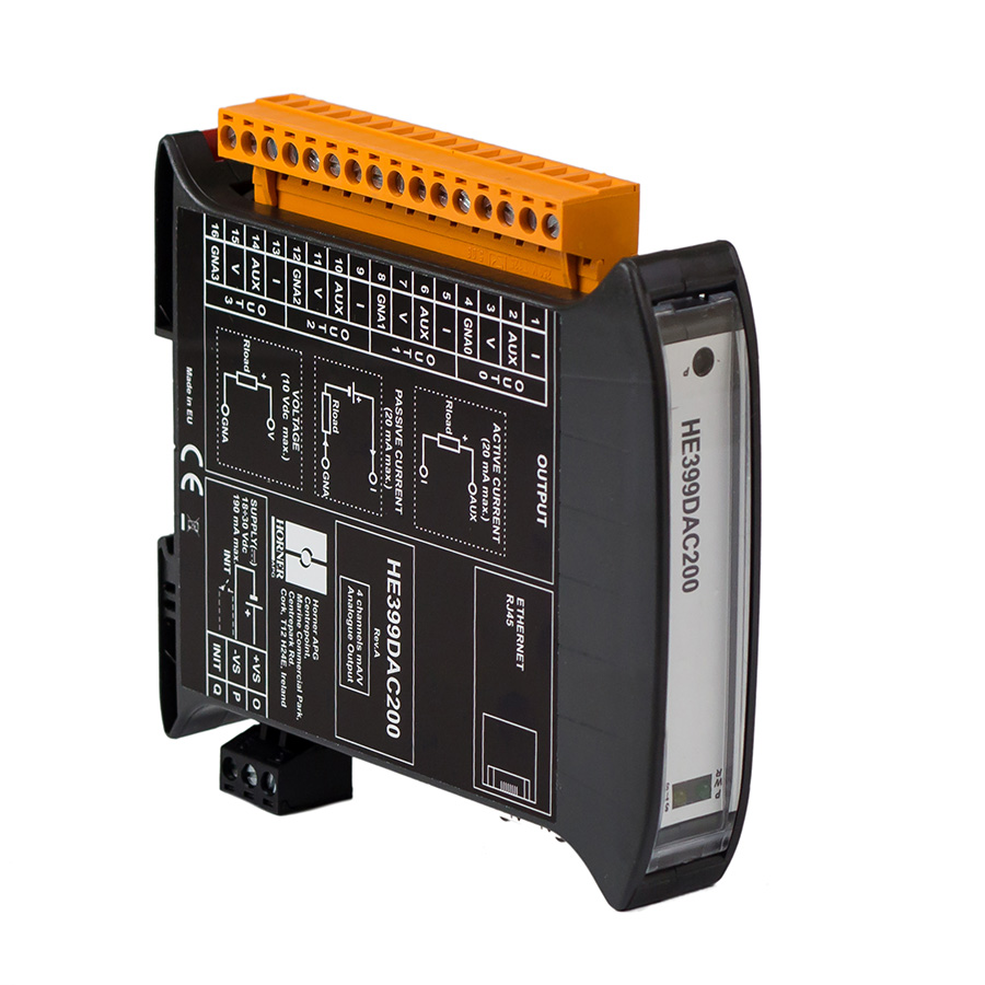 | HE399DAC200 | 4 wyjścia analogowe napięciowo-prądowe (0...20 mA/ 0...10 VDC), rozdzielczość 14 bitów |